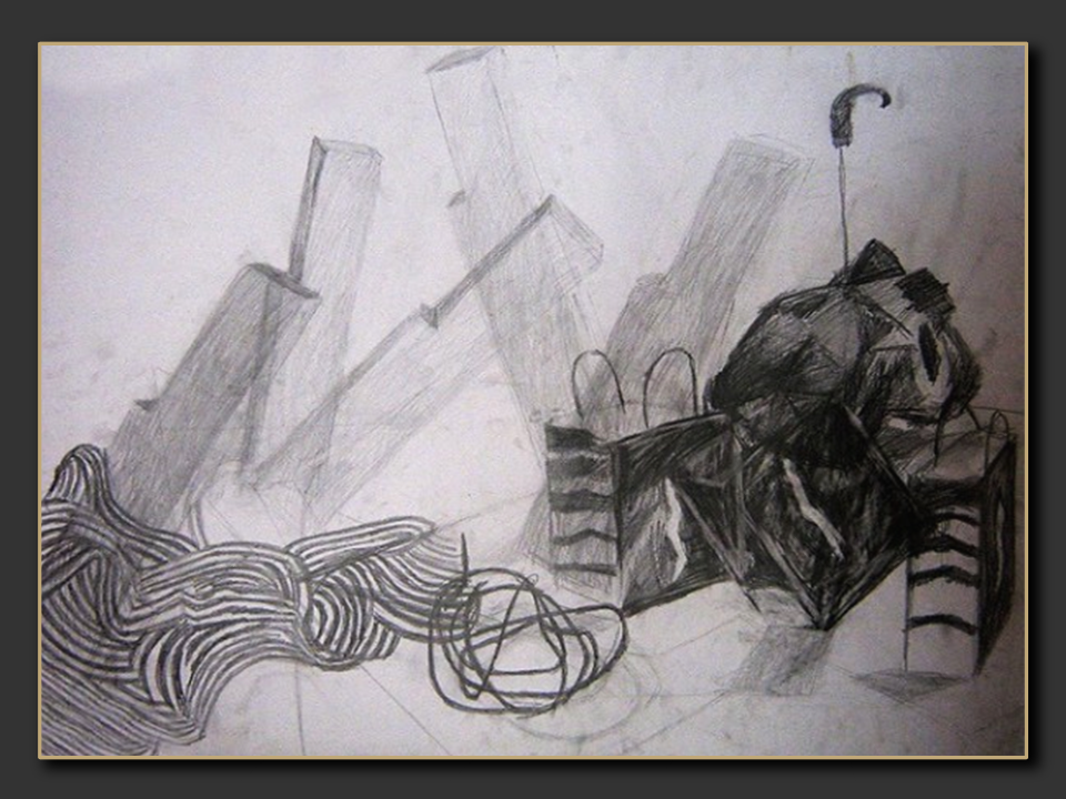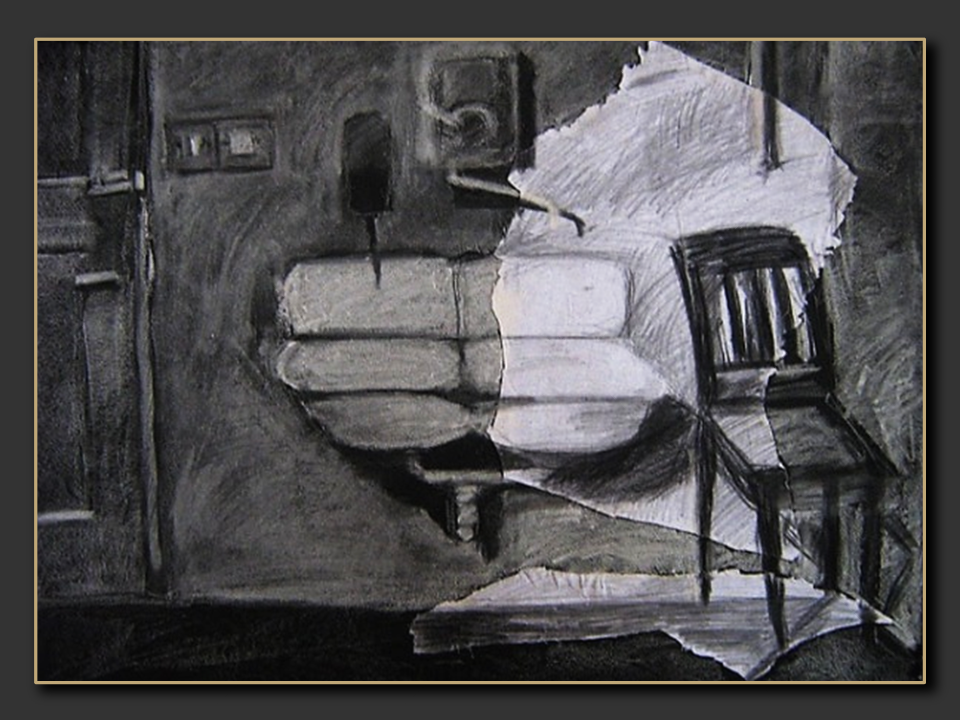 Technika wykonania: ołówek, pastel, węgiel i kawałki płótna na kartonie | Wymiary: 50 x 70 cm | Rok powstania: 2005